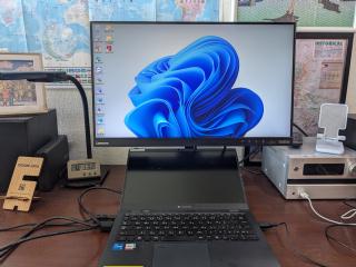 1/17 Conventionのオークションで落札した21インチモニターの配達に、いかさんがわざわざ来て下さる。まあドライブ半分ということなので、お言葉に甘えてお越し頂いた。しかし酔っ払って参加していたとは言え、落札したことすら忘れるとは何事か(汗)。小さい13.3インチのノートPCに繋ぐと大きくなって、細かい字に苦労していた身としては大いに助かった。いかさん、有難うございます!